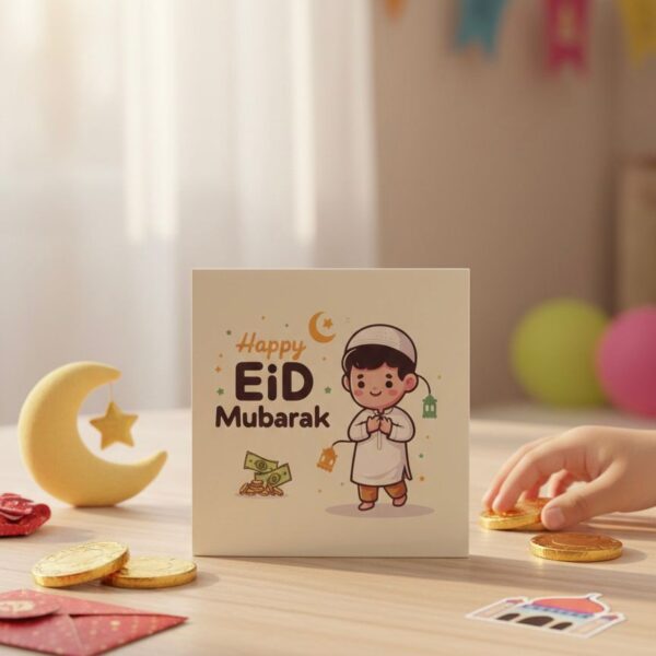 Our envelopes come in a variety of styles, from playful cartoon characters and fun, colorful patterns to elegant options featuring gold-foiled Islamic motifs like crescents and stars. For a unique touch, we offer exclusive boy-and-girl-shaped cutouts, adding a fun, personalized element to the gift-giving experience. Alternatively, our modern, reusable acrylic envelopes with bold “Eid Mubarak” text in stunning gold provide a stylish and durable keepsake that can be cherished for years to come.